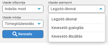 Az előző pontokban jelzett paraméterek beállítását követően, az útvonal tervező a beállított paramétereknek megfelelő három eljutási lehetőséget adja eredményül.